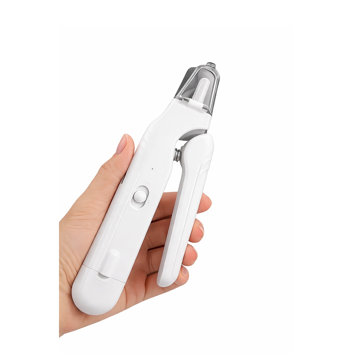 Elektryczny obcinacz z wbudowanym oświetleniem LED i pojemnikiem na odpady. Bezpieczne, precyzyjne przycinanie pazurków bez stresu.